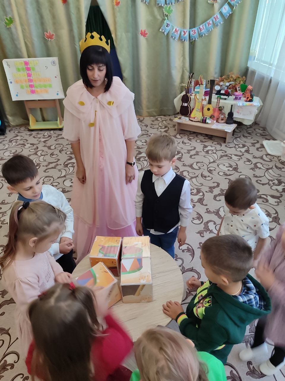 1 октября 2025г. в ГБДОУ ЛНР «ЯСЛИ-САД №68» прошел необычный и волшебный день – Международный День музыки, который подарил всем улыбку, радость и хорошее настроение. Музыкальное мероприятие «погрузило» детей в мир прекрасного, которое способствует формированию эстетического отношения к музыке. К детям на праздник приходила Фальшивая Нотка, которая закрыла на ключ Фею Музыки. Своими талантами дети помогли найти ключ и вернуть на праздник Фею Музыки. Наши дети играли в оркестре на музыкальных инструментах, собирали из кубиков картинки музыкальных инструментов, играли в подвижную музыкальную игру «Перепутанные нотки», пели песенку «Картинки-половинки», а также просмотрели мультфильм «Веселые нотки». В конце праздника Фея Музыки подарила детям средних групп музыкальные раскраски, а Фальшивая Нотка принесла в подарок детям съедобные нотки в виде печенья. Музыкальный руководитель Новикова Т.С. вручила детям грамоты за участие в конкурсе поделок, приуроченном к этому празднику. Очень важно, если ребенок восхищается прекрасным, добрым, выраженным в музыке, то этим решается основная задача нравственно-эстетического воспитания и успешно формируются разнообразные музыкальные навыки… Русский композитор Д. Д. Шостакович утверждал: «Любите и изучайте великое искусство музыки. Оно откроет вам целый мир высоких чувств. Оно сделает вас духовно богаче, чище, совершеннее. Благодаря музыке, вы найдёте в себе новые, неведомые вам прежде силы. Вы увидите жизнь в новых тонах и красках».